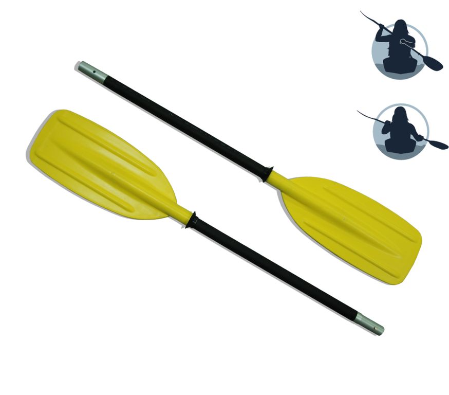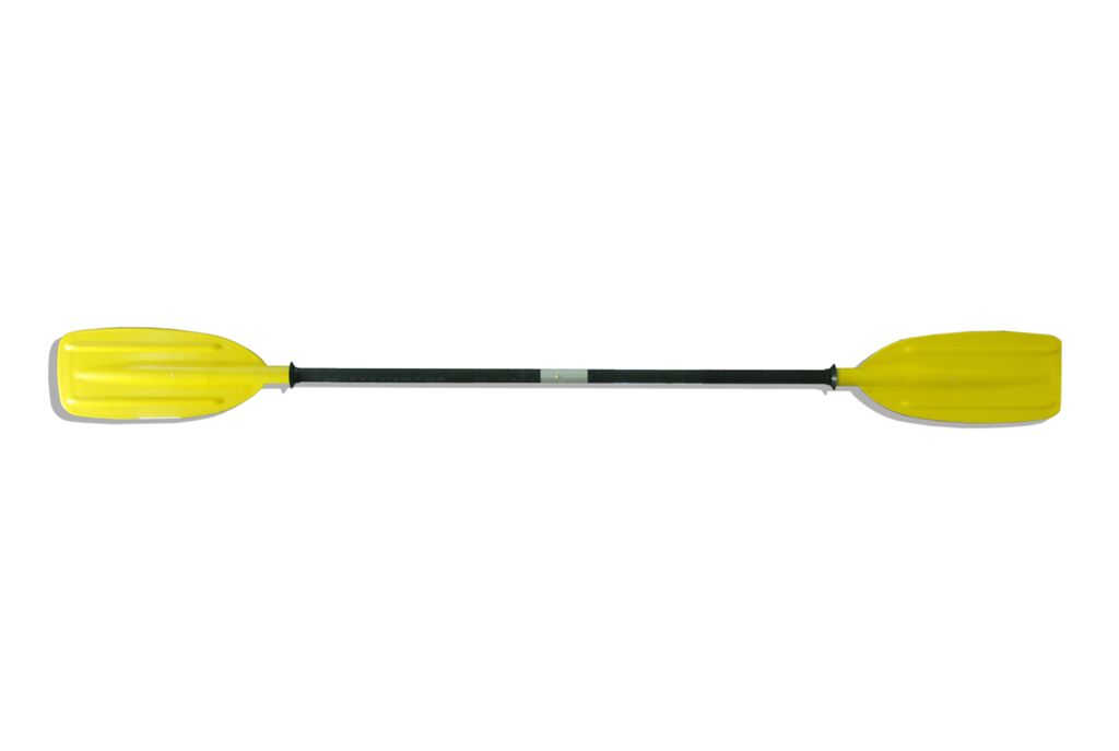 Байдарочное весло разборное на 2 части с симметричными лопастями. Предназначено для гребли как по спокойной воде, так и по бурной воде. Высокая прочность лопаток. Лопасти весла изготовлены из высокотвёрдого полиэтилена методом литья под давлением. Цевье весла изготовлено из анодированной дюралюминиевой трубы D16Т (повышенная устойчивость к коррозии). Места хвата рук покрыты противоскользящим и теплоизолирующим покрытием. Весло разбирается на 2 равные части, фиксируется кнопочным фиксатором. Весло имеет положительную плавучесть. Для защиты от стекания воды весло оборудовано резиновыми манжетами (капельниками).