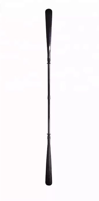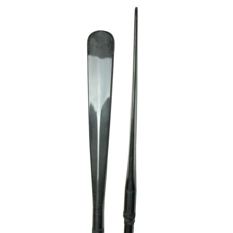 Весло гренландское карбоновое разборное на 2 части (2-х составное). Очень прочное и легкое, оно полностью выполнено из карбона. Лопасти этого весла вклеиваются снаружи цевья, что увеличивает прочность соединения. Прочные лопасти из карбона (углепластика), усиленные кевларом не боятся ударов о камни. Труба изготовлена из карбона методом намотки. Возможно изготовление трубы с овальным профилем (прилив) под хват ведущей руки или без него. Надежный пластиковый замок с карбоновой вставкой позволяет разбирать весло на 2 части и регулировать угол разворота и увеличивать длину весла до 100 мм. Люфт в замке отсутствует. Гладкие и хорошо закругленные тонкие края лопастей обеспечивают тихий захват и уверенный ход. Весло имеет капельники (манжеты) предотвращающие стекание воды на руки. В продаже имеется чехол для данного весла.