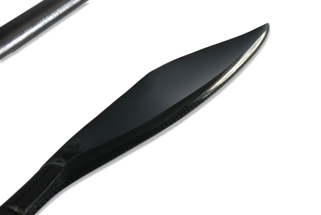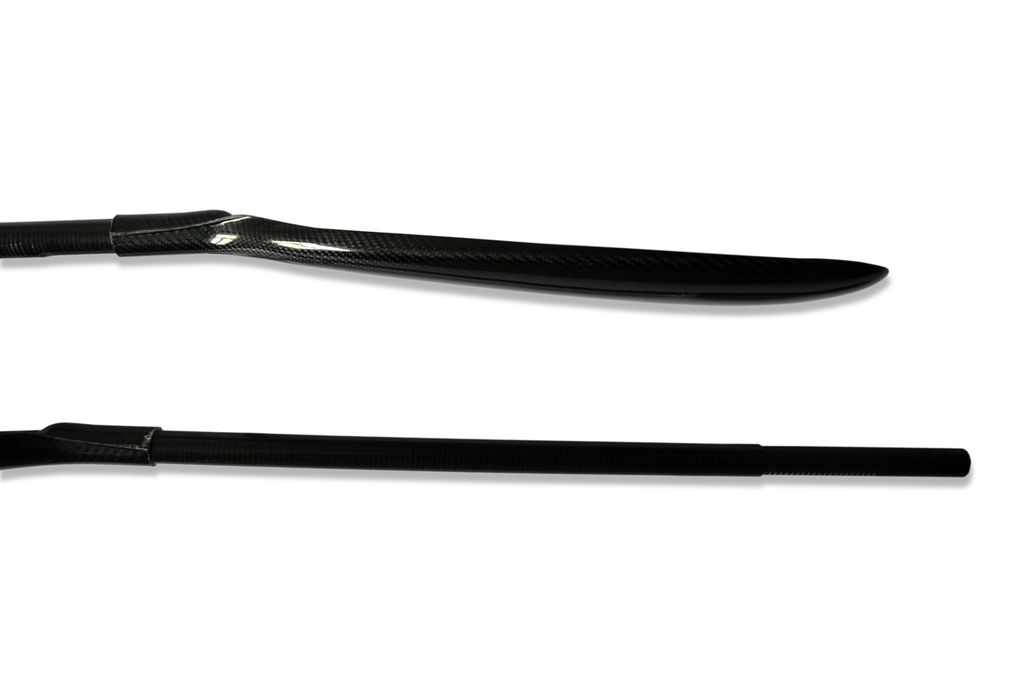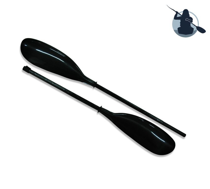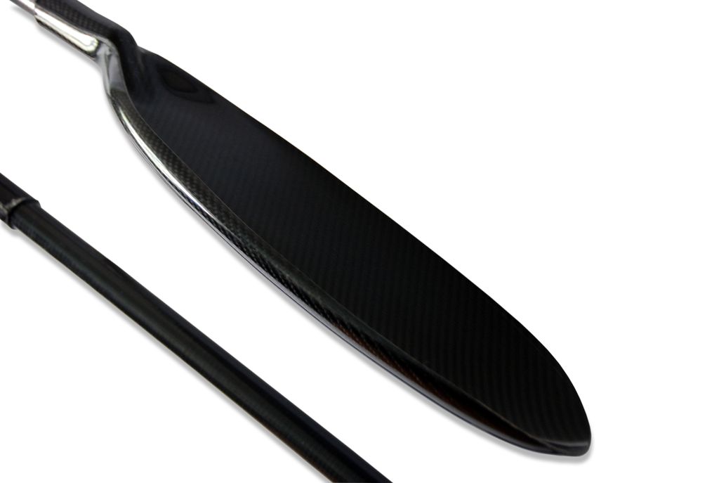 Легкое гоночное весло для гребли на байдарках с высоким углом. Лопасть весла напоминает форму "ложки", способствуя более мощному началу гребка, но усложняя возможность подтягивающих и проводящих элементов. Лопасти этого весла вклеиваются снаружи цевья, что увеличивает прочность соединения. Прочные лопасти из карбона (углепластика), усиленные кевларом не боятся ударов о камни. Труба изготовлена из 100% карбона методом намотки. Труба изготовлена из карбона методом намотки. Возможно изготовление трубы с овальным профилемь (прилив/овал) под хват ведущей руки и без него. Надежный замок с карбоновой вставкой (нанесена шкала регулировки длины) позволяет регулировать угол разворота и увеличивать длину весла до 100 мм. Люфт в замке отсутствует. Возможны варианты изготовления трубок с алюминиевым или пластиковым замком. В продаже имеется чехол для данного весла.