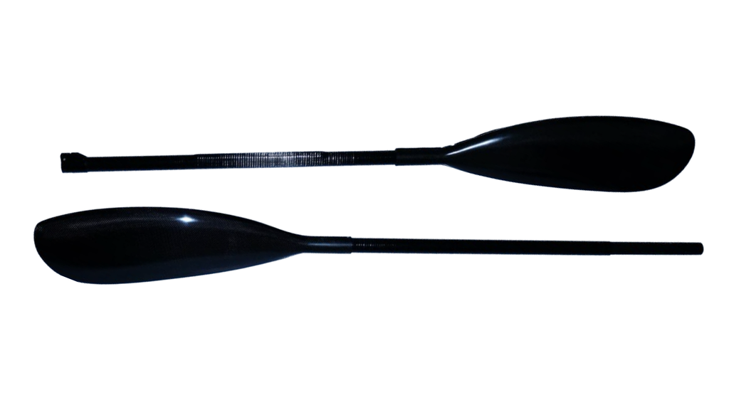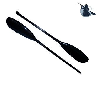 Весло байдарочное карбоновое 2-х составное (разборное на 2 части). Легкое спортивное (гоночное) весло для гребли на байдарках с высоким углом. Лопасть весла напоминает форму "ложки", способствуя более мощному началу гребка, но усложняя возможность подтягивающих и проводящих элементов. Лопасти этого весла вклеиваются снаружи цевья, что увеличивает прочность соединения. Прочные лопасти из карбона (углепластика), усиленные кевларом не боятся ударов о камни. Труба изготовлена из карбона методом намотки. Возможно изготовление трубы с овальным профилемь (прилив/овал) под хват ведущей руки и без него. Надежный замок с карбоновой вставкой (нанесена шкала регулировки длины) позволяет регулировать угол разворота и увеличивать длину весла до 100 мм. Люфт в замке отсутствует. Возможны варианты изготовления трубок с алюминиевым или пластиковым замком. В продаже имеется чехол для данного весла.