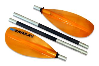 Весло байдарочное 4-х секционное для туризма и отдыха. Предназначено для гребли по морям, озерам и спокойным рекам. Подходит для гребцов начального уровня с высоким и низким углом гребли. Хороший вариант для гребли на пакрафтах. Разбирается и имеет компактные размеры для перевозки. Лопасти этого весла вставляются с наружи цевья, что увеличивает прочность соединения. Лопатки изготовлены из поликарбоната (прочностные характеристики выше пластика, а вес ниже) имеют современную ассиметричную форму. Шафт выполнен из авиационного алюминия марки Д16Т покрытый специальным антискользящим и теплоудерживающим покрытием. Весло имеет кнопочное соединение. Возможно изготовление любой длины весла, угла разворота, а также секций любой длины под заказ.